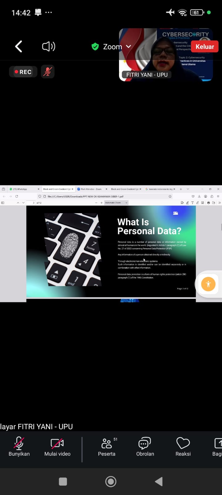 dokumentasi berjalannya webinar ~ Admin Fakultas Hukum